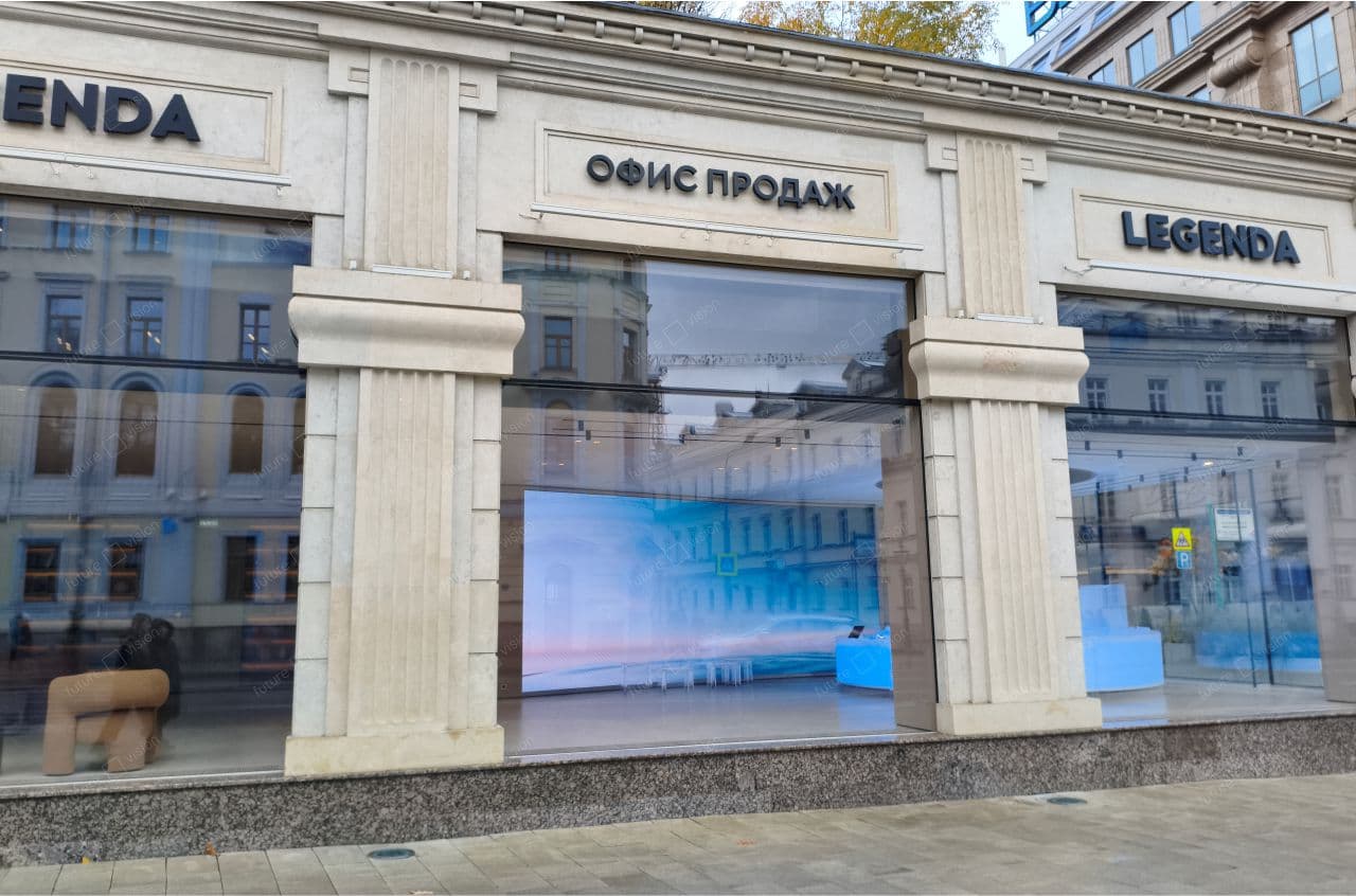 Компания Future Vision изготовила и установила современный светодиодный экран для офиса продаж девелопера LEGENDA в городе Москва. Светодиодная стена размером 4 080 х 2 880 мм стала ярким технологичным акцентом всего помещения. С помощью LED стены застройщик сможет презентовать жилые комплексы и другие решения компании более креативно, эффективно и динамично в сравнении со статичными изображениями. Частота обновления 3840 Гц и малый шаг пикселя Р1.25 обеспечивают повышенное качество изображения с минимального расстояния.